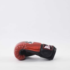 - Elegant Aesthetics: The metallic red exterior is complemented by black accents and detailed stitching, giving these gloves a modern and professional look. The iconic RAJA Boxing logo and crown emblem signify the brand’s premium quality and heritage.
